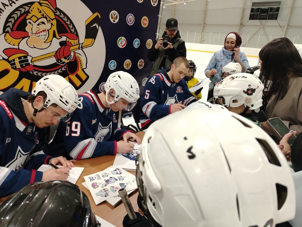 24 апреля на ледовой арене «Олимп» в Мамадыше состоялся мастер-класс для юных хоккеистов с участием игроков ХК «Нефтехимик» — Фёдора Крощинского, Никиты Артамонова и Арсена Хисамутдинова.